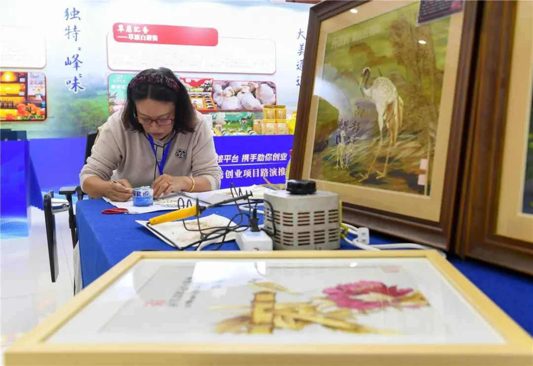 优秀创业项目路演分享创业经验, 12月4日,2024年内蒙古自治区优秀创业项目路演推介交流活动在呼和浩特市举行。活动邀请国家创业培训师、成功企业家为创业者进行创业指导和经验分享,并设置20个特色展位,从内蒙古各盟市优选20多个优秀项目进行推介展示。活动现场了解优秀创业项目产品 本次活动由内蒙古自治区人力资源和社会保障厅举办,从2024年11月开展以来,已举办8场政策宣讲,对430余家企业及个体工商户进行“点对点”指导,增加创业者和创业型企业的创业积极性。现场制作芦苇画优秀创业项目展示展示产品