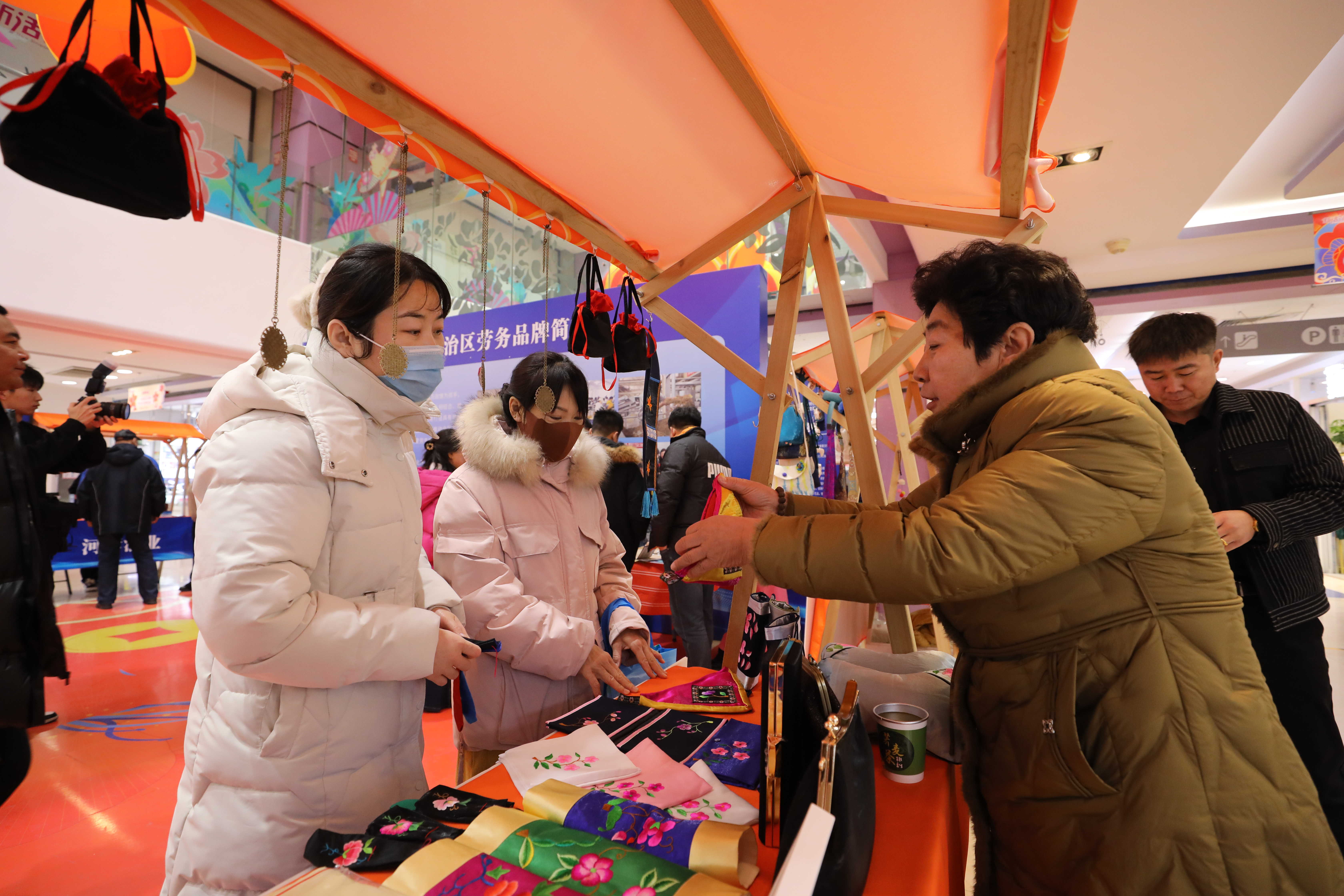 本次活动,来自内蒙古的固阳黄芪产业工、河套酿造工、敖汉小米农技工、察哈尔非遗巧手、乌拉特鸿雁技忆工、兴安草原绣娘、库伦“荞乡”新农人、呼和浩特烧麦制作工、科尔沁黄牛产业工、蓝旗奶酪工10家特色劳务品牌走进当地商圈,现场向北京市民展示技艺绝活。