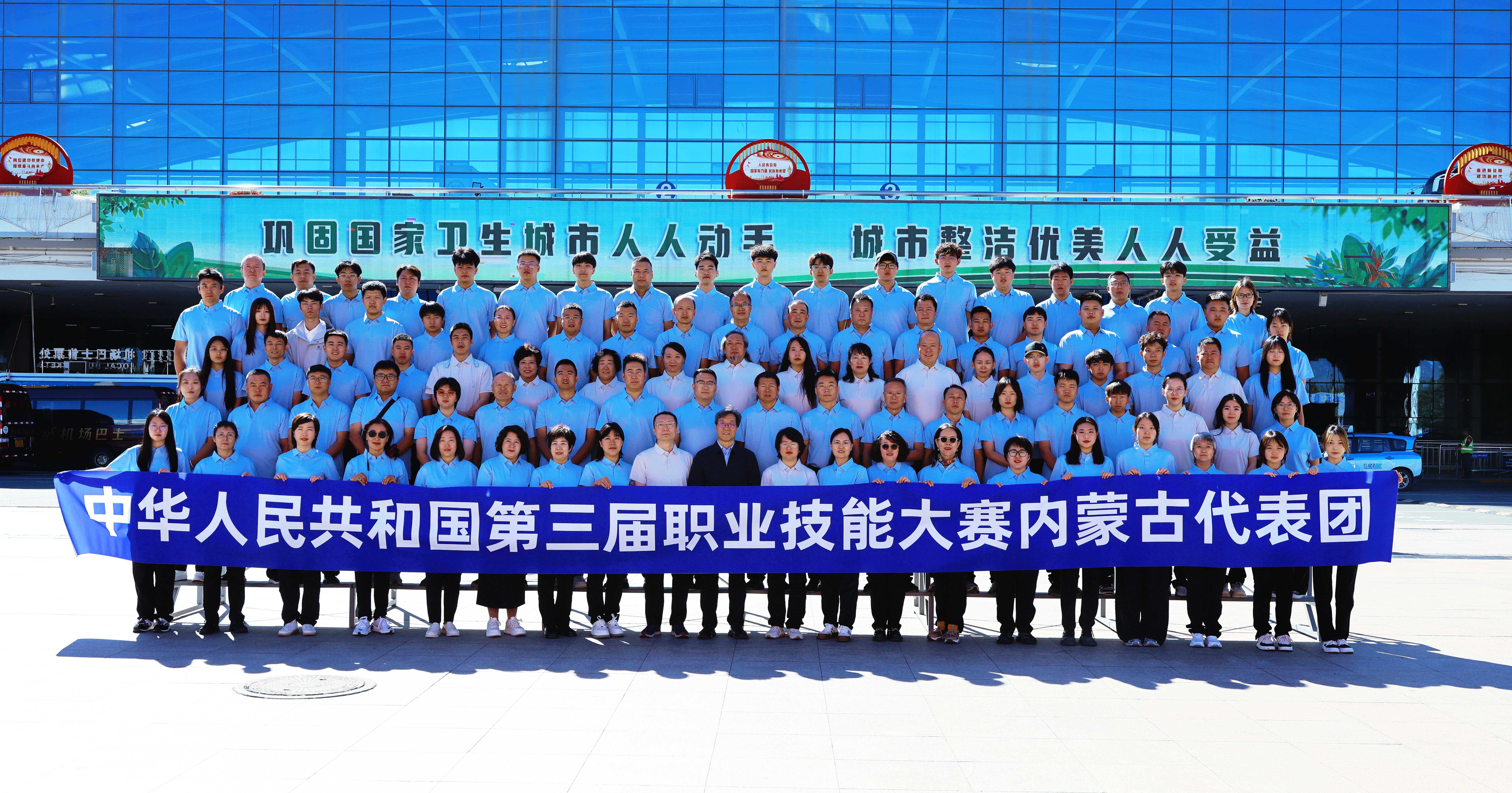 内蒙古代表团出征第三届全国职业技能大赛, 9月17日,参加中华人民共和国第三届职业技能大赛的内蒙古代表团整装出发,满怀信心奔赴河南,在赛场上展示内蒙古技能人才风采。 内蒙古代表团出征现场。 此次大赛以“技能照亮前程”为主题,将于9月19日至23日在郑州举行,设置106个竞赛项目。内蒙古代表团共派出115名选手、105名裁判员,参加105个赛项的比赛与执裁工作,涵盖世赛选拔项目66个、国赛精选项目39个。大赛期间,还将同步展示莜面制作、马头琴制作、皮艺制作等项目以及牛角雕、羽毛工艺品、步兵战车模型等作品,并参加大赛绝技绝活展演活动。 内蒙古选手展示风采。 “能够代表内蒙古出征全国技能大赛,与全国各地选手交流学习、切磋技艺,我深感荣幸。”内蒙古代表团选手许晨宇说,我将全力以赴,以最佳状态赛出个人最高水平,为内蒙古增光添彩。 内蒙古选手信心满满。 赛场是竞技场,更是展示内蒙古风采、检验技能实力的重要窗口。为备战此次大赛,内蒙古自治区人力资源和社会保障厅统筹安排,科学组织赛前集训,同时采取“走出去、引进来”的训练模式,多维度提升选手综合竞赛素养。选手们勤学苦练、全力备战,将以昂扬的斗志、精湛的技艺亮相大赛舞台。 选手们互相加油鼓劲。 “内蒙古高度重视技能人才队伍建设,着力打造结构合理、素质优良、规模宏大、梯次衔接的技能人才队伍,通过不断加大投入和支持力度,为技能人才培养供给和成长成才创造了良好机遇和条件。”内蒙古自治区人力资源和社会保障厅职业能力建设处处长于海燕表示,下一步将持续完善技能人才培养、评价、激励机制,引导更多劳动者走技能成才、技能报国之路,推动技能人才队伍建设高质量发展。