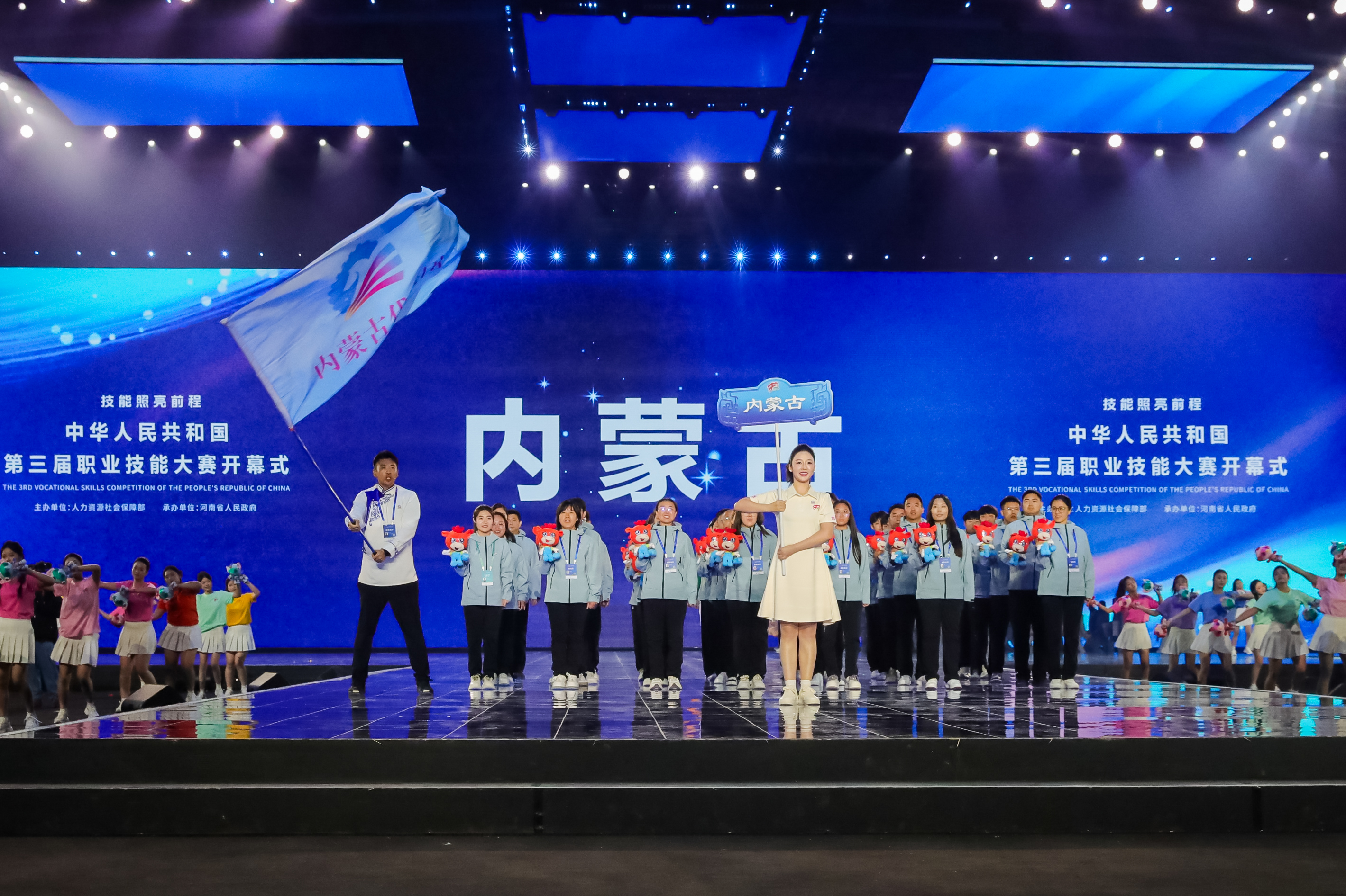 第三届全国技能大赛开幕 内蒙古代表团亮相郑州, 9月19日晚,中华人民共和国第三届职业技能大赛在河南郑州隆重开幕。开幕式上,内蒙古代表团精神抖擞、意气风发,高呼“技兴北疆 能创未来”的响亮口号步入会场,展现了北疆工匠昂扬奋进、锐意拼搏的精神风貌。 本次大赛,内蒙古自治区共选派115名优秀选手,参与105个赛项的激烈角逐。参赛项目覆盖66个世赛选拔项目和39个国赛精选项目,实现新职业赛项、乡村振兴赛项全覆盖。选手构成呈现多元特点,年龄跨度从17岁到52岁,涵盖技能新锐与经验丰富的行家里手,人员身份包括技工院校学生、企业职工和院校教师,体现了内蒙古技能人才队伍建设正在向全年龄段覆盖、多领域贯通、产学研用深度融合的方向稳步推进。 大赛赛事活动为期5天,将于9月23日闭幕。闭幕式上将为获奖选手颁奖,同时进行大赛会旗交接,下一届全国技能大赛将由浙江省承办。